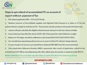 Steps to get refund of accumulated ITC on account of export without payment of Tax